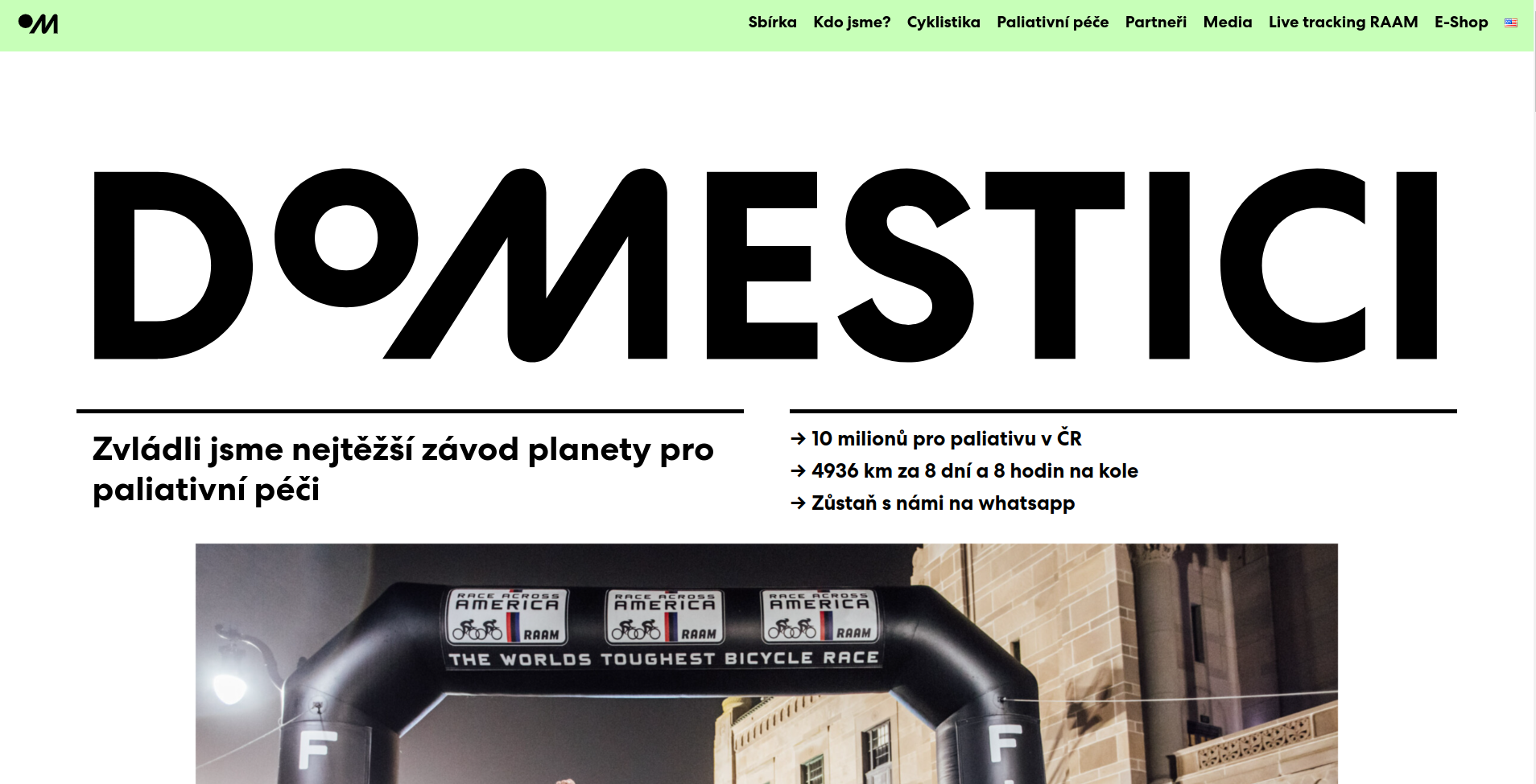 „Projeli jsme na kole 5 000 kilometrů ze západního na východní pobřeží USA, abychom spolu s vámi podpořili rozvoj paliativní péče v Česku. Postavili jsme se do středu týmu domestiků, kteří mají společnou metu – dostat závodníka do cíle v co nejlepší fyzické i psychické kondici. Je to podobný úkol jako mají příbuzní těžce nemocných a umírajících – doprovázet své blízké do cíle. Staňte se jedním z domestiků a připojte se k neuvěřitelnému dobrodružství pomoci.“